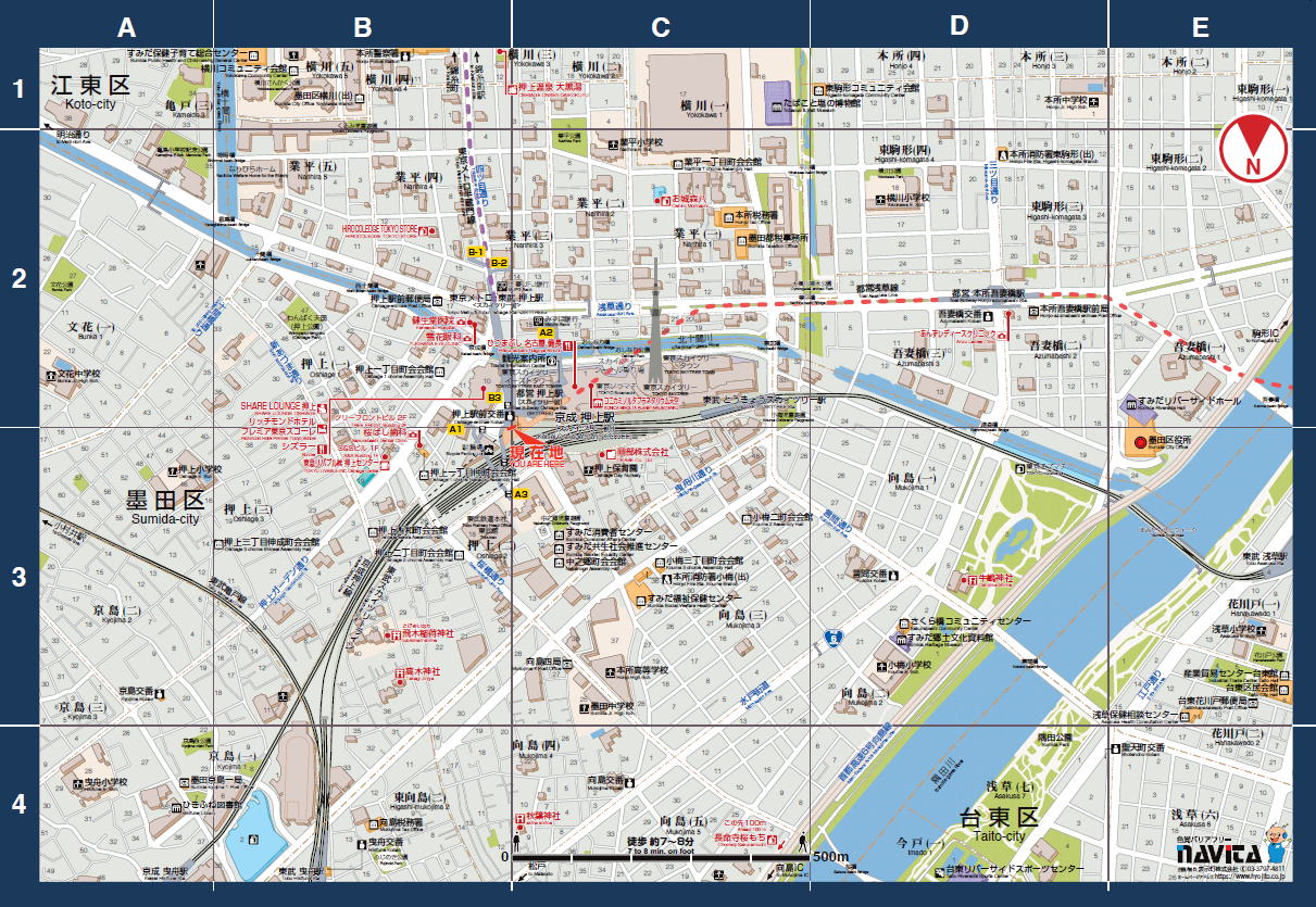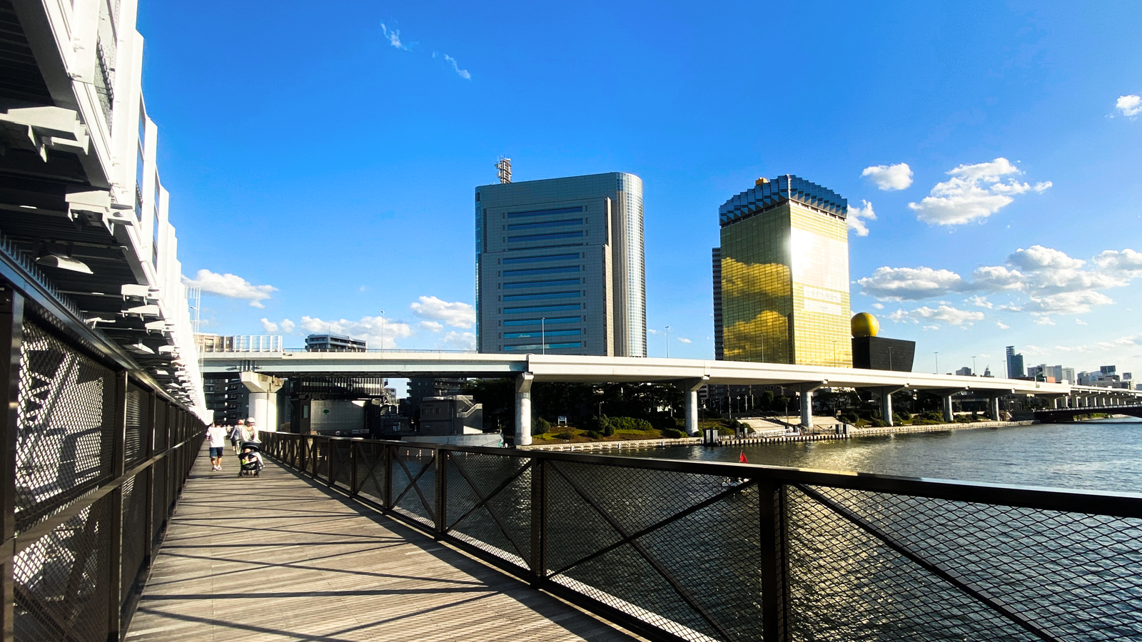 Asakusa and Tokyo Skytree, the Sumida River bridge connects these two popular areas. Visitors can look through the glass floor of the 160-meter-long promenade and see the surface of the Sumida River and boats in operation.